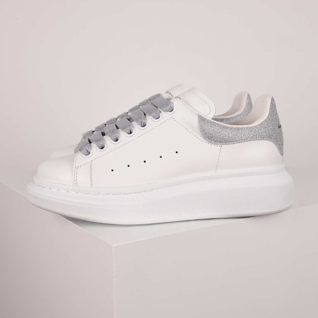 Alexander McQueen white sneakers Data development of original lasts and original paper plates with upgraded quality produced in Guangdong A complete set of counter packaging materials and accessories (including a Courier reinforced kraft paper box). The outer box label is embedded with a core anti-counterfeiting chip device, which is far superior to the copywriting versions on the market. The sole supports NFC original code independent scanning and adopts a silk hard head The upper material of this layer of calf leather shoes is made of super soft lambskin both inside and out, which is breathable and has a super soft PU feel. It is made of latex material. The shoes have an external original vacuum high-density height-increasing sole. They are white smooth cowhide lace-up sports shoes with a round toe design and black suede details on the heel. It is paired with wide and flat LACES, and the tongue and back of the shoe are decorated with the brand logo of Alexander McQueen. Wide rubber sole. The sports shoes come with a pair of white LACES made of 100% calfskin Size: 35 36 37 38 39 40 41 42 43 44 45