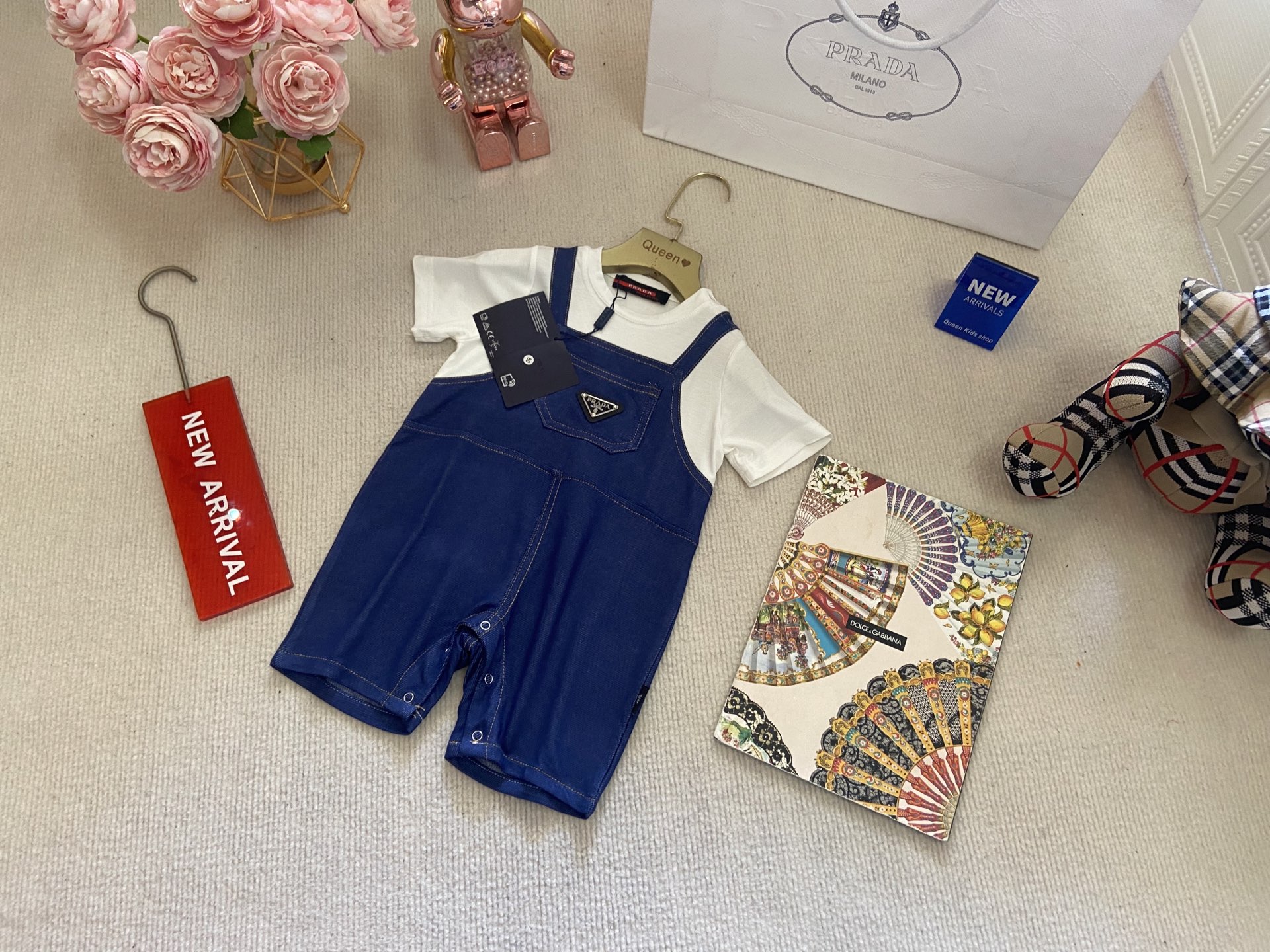 Book for one week! Prada, high-end children's clothing, boys' and girls' clothing sets, baby jumpsuits, Class A pure cotton fabric is also very comfortable to wear next to the skin! Code size: 66-73-80-90-100cm