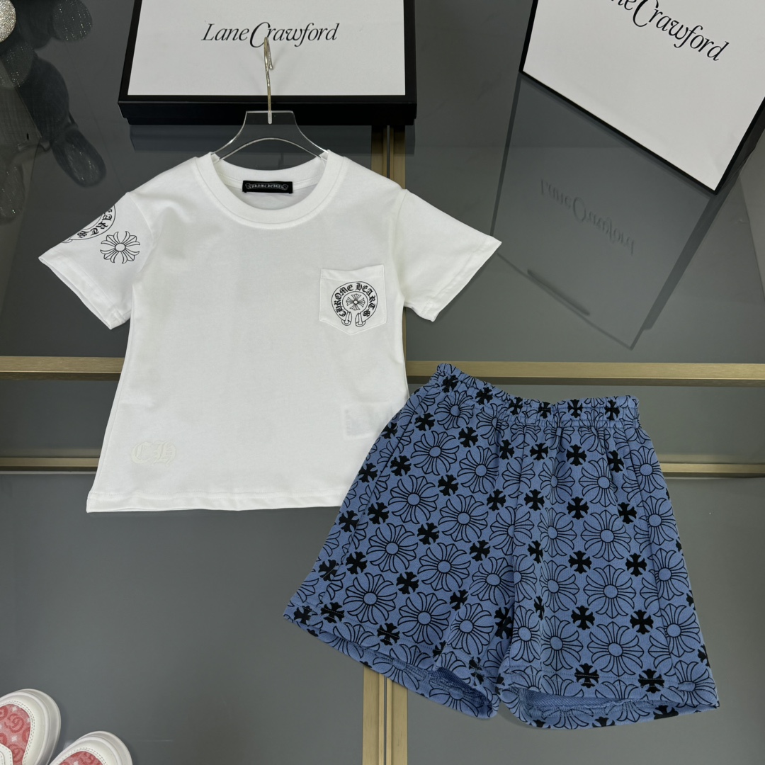 Crow heart, high-end children's wear, private suits, pure cotton fabrics, exclusive label print, match with India series with shorts, upper body comfortable, good-looking, code number: 100/110/120/130/140/150/160 cm