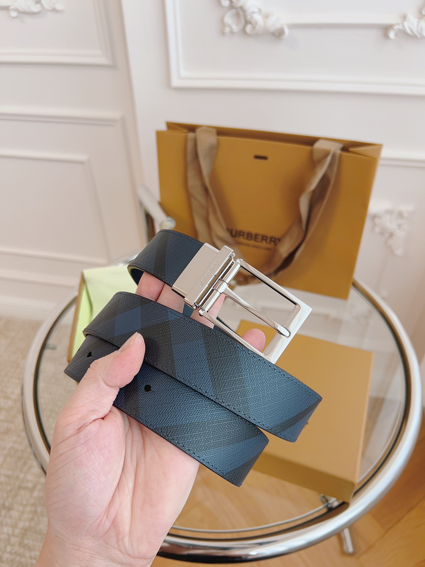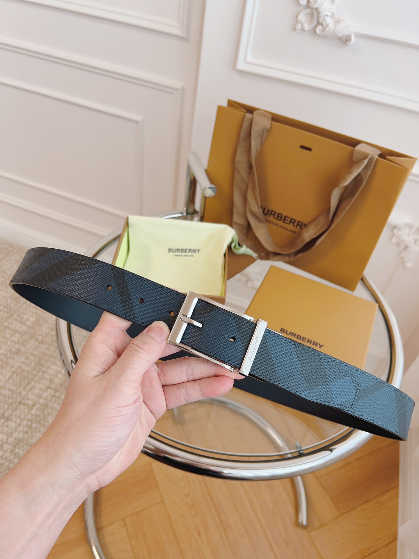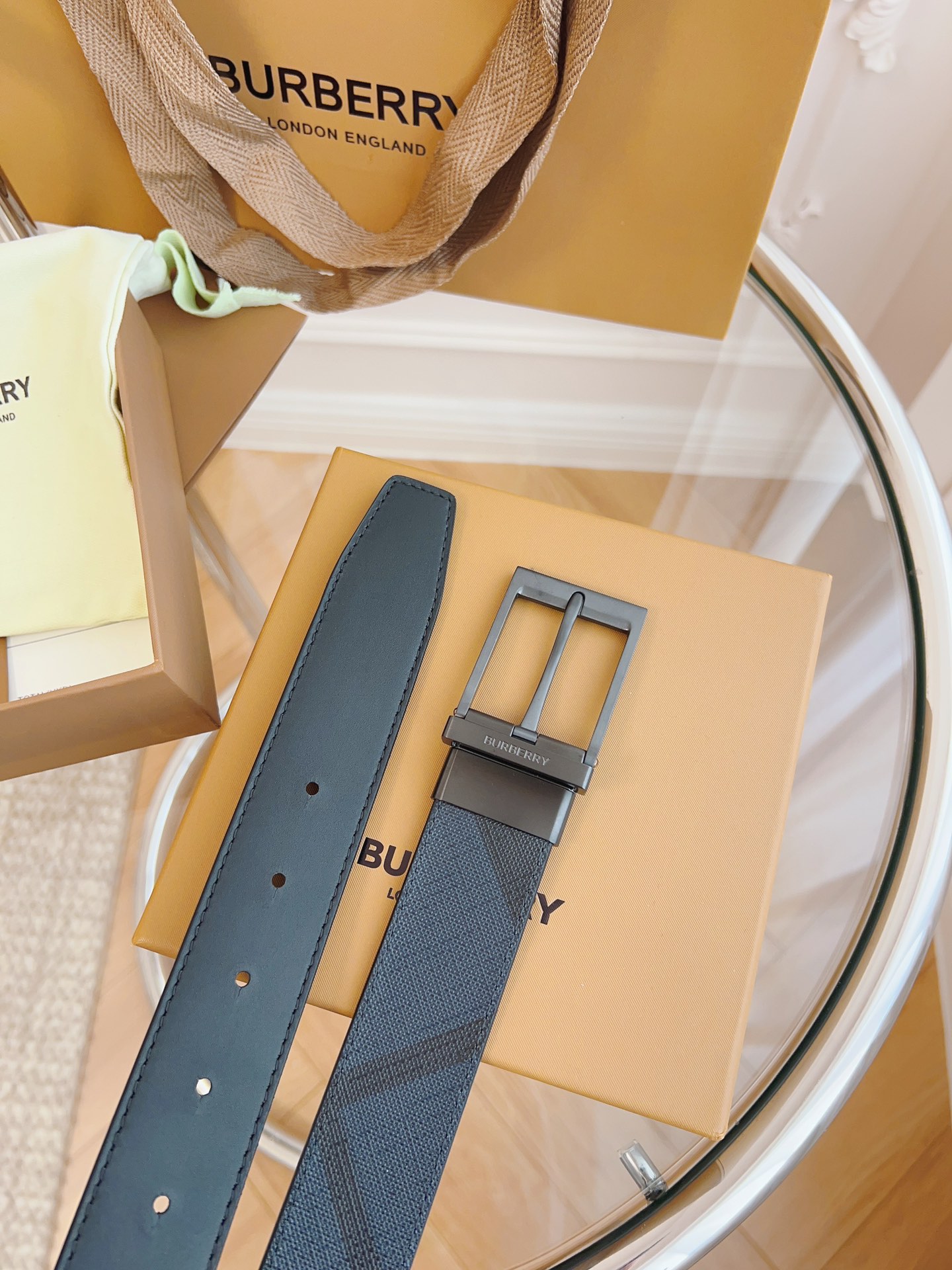 Burberry is made of top-grain leather from the original factory. The quality of the check/cowhide is beyond doubt. There is no better, only the best. The width of the belt is 3.5 cm