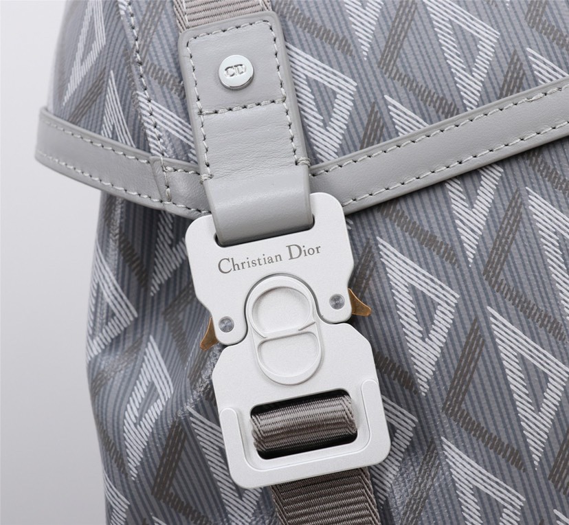 This Dior Hit the Road backpack is a brand-new style of this season, integrating modern style with Dio's haute couture spirit. Crafted with Dior grey CD Diamond pattern canvas, drawing inspiration from Dio archives, and decorated with smooth cowhide details. Paired with two "CHRISTIAN DIO" logo nylon jacquard ribbons, a spacious main compartment, a large flip-top pocket on the front and two flip-top pockets on the side. Practical and versatile, it is the finishing touch for all kinds of casual outfits. Dior grey canvas CD Diamond pattern The CD Diamond pattern designed by Marc Bohan in 1974 reinterprets the initials of "CD" in three-dimensional diamond-shaped lines and is made of cotton canvas Dior grey smooth cowhide leather The front metal cladding brass "DIO" logo The inner side is decorated with the "DIO" embossed logo "CHRISTIAN DIO" nylon jacquard ribbon Flip the lid and pull the rope to open and close The aluminium clasp is decorated with the logo "Christian Dio" and the initials "CD" Adjustable shoulder straps made of leather and padded mesh fabric Leather handle The back is reinforced with padded mesh fabric and features the "DIO" logo Internal laptop compartment Dimensions: 43 x 51 x 20 centimeters The main partition can store a 15-inch laptop, files and tablet The side pocket can hold an ione 12 o Max No. 1ESBA163CD color