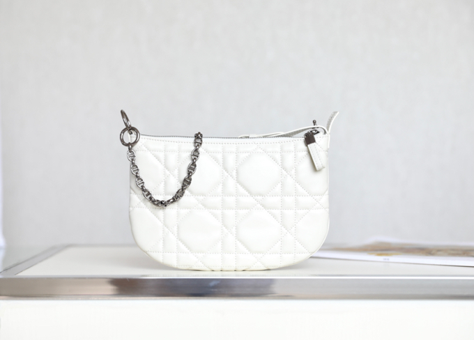 The mini tulip handbag is white The Dior Caro tulip handbag is a new product of this season, elaborately designed and integrating multiple elements Show a modern style. Crafted from cream-colored cowhide leather and adorned with quilted oversized rattan checkered stitching, it stands out as unique. Mini style, two-in-one design, adjustable leather and chain. The handle is ingeniously designed and can be transformed into a carrying strap for use as a clutch bag Size: 25 x 16 x 2.5 cm