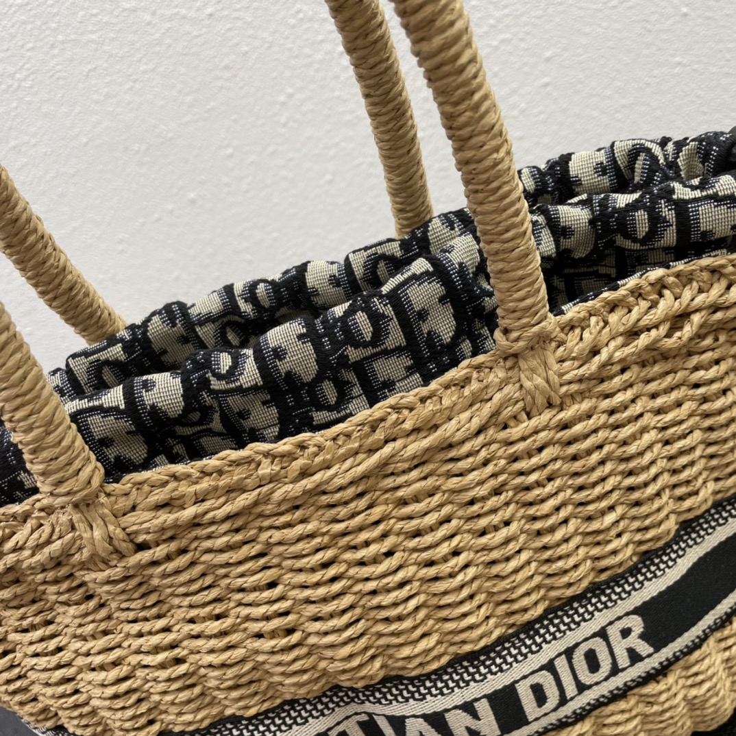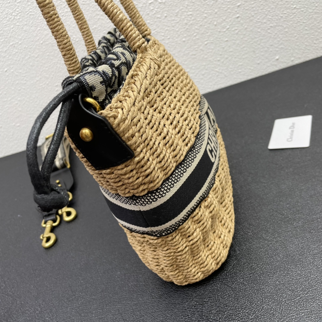 Early spring new woven vegetable basket bag The Dior Wicker basket bag is elaborately hand-woven from wicker. Inspired by the brand's logo style, the Book Tote handbag, the same decorative strap is decorated with the "Christian Dior" logo embroidery and paired with an embroidered wide shoulder strap. It can also be carried over the shoulder or crossbody. The front features a detachable and adjustable double-sided embroidered wide shoulder strap with a blue Oblique printed lining pocket. It comes with a leather drawstring internal zipper pocket. It can be carried by hand, over the shoulder or crossbody. Dimensions: 28x21x12 Official website number: M7601CMVO_M918 Website sale focuses on online have sold out ?? model 8066