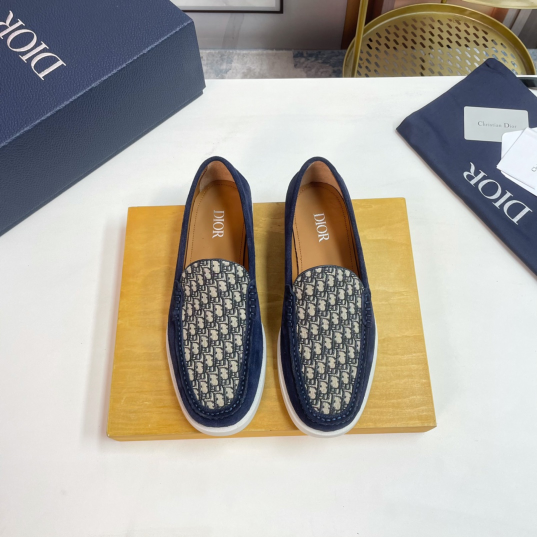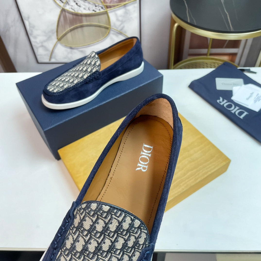 Dior DIOR Top Size: 39-44.45 Custom 2023?? New men 's casual loafers, made from imported top-grain brushed cowhide, hand-stitched with mark stitching, decorated with brand' s classic jacquard canvas on the upper, and the original rubber sole is soft and comfortable.