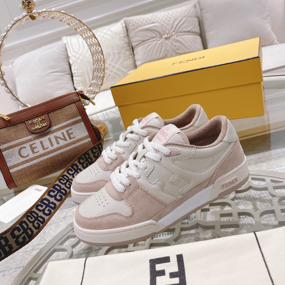 Model No. #3008?????? Top edition Fendi/ Match new sports board shoe ??, a sports shoe by Kim Jones, made of leather and suede, perfectly recreating the retro style, simple overall design, very casual, with classic FF pattern stitching on the side The sole is adorned with brand letter patterns, exuding understated luxury and perfect wear. It is suitable for both men and women. [Rose] Size: 35-44, 45.46, custom-made