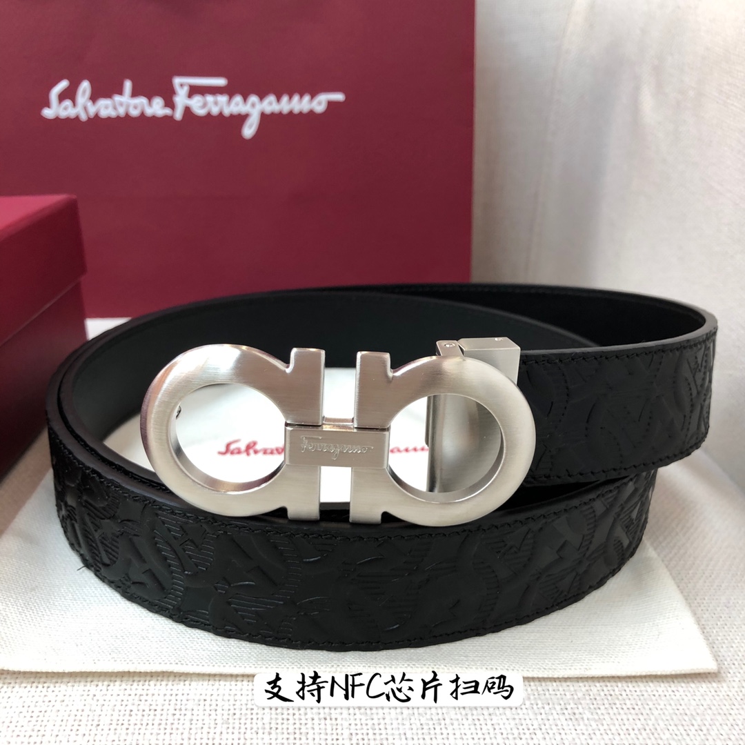 Ferragamo 3.5cm high-end custom men's belt, double-sided imported cowhide, choose and match by yourself, genuine materials, very high-quality, fashionable and classic, not lacking in style, can be cut by yourself!