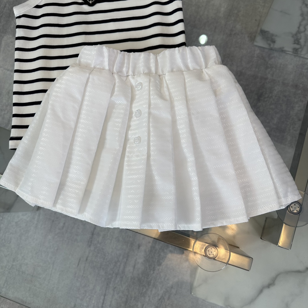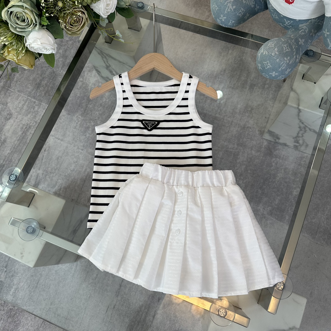 Prada, high-end children's wear, the girl's skirt, the arc DE triomphe ice silk stripe vest, imported ice silk yarn, pleated skirt collocation, upper body comfortable, good-looking, code number: 100/110/120/130/140/150/160 cm