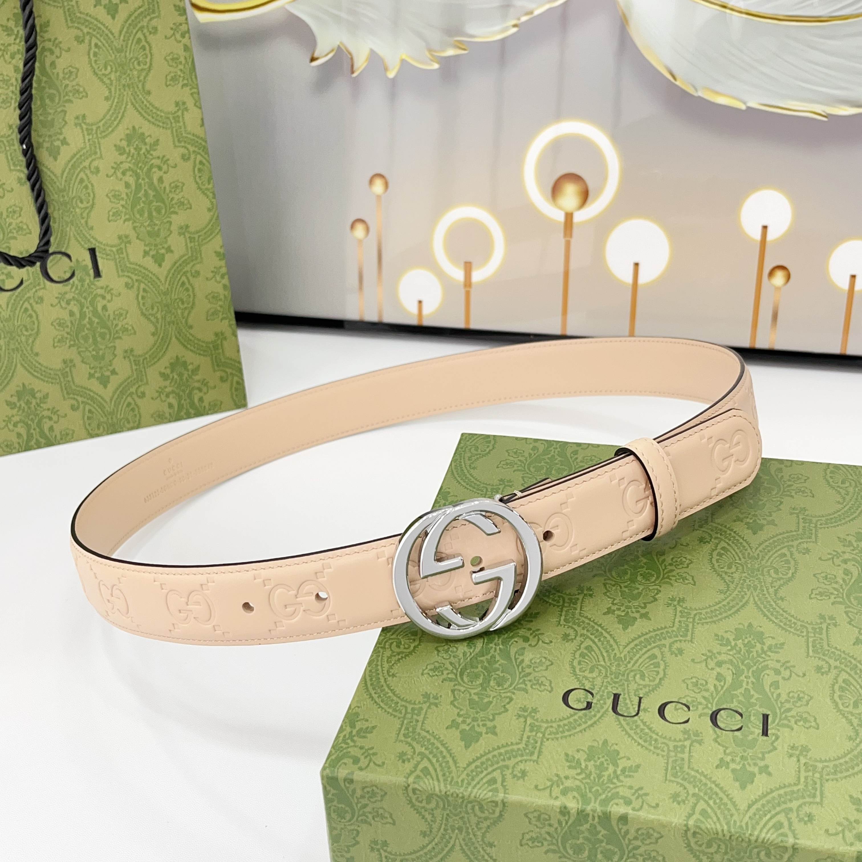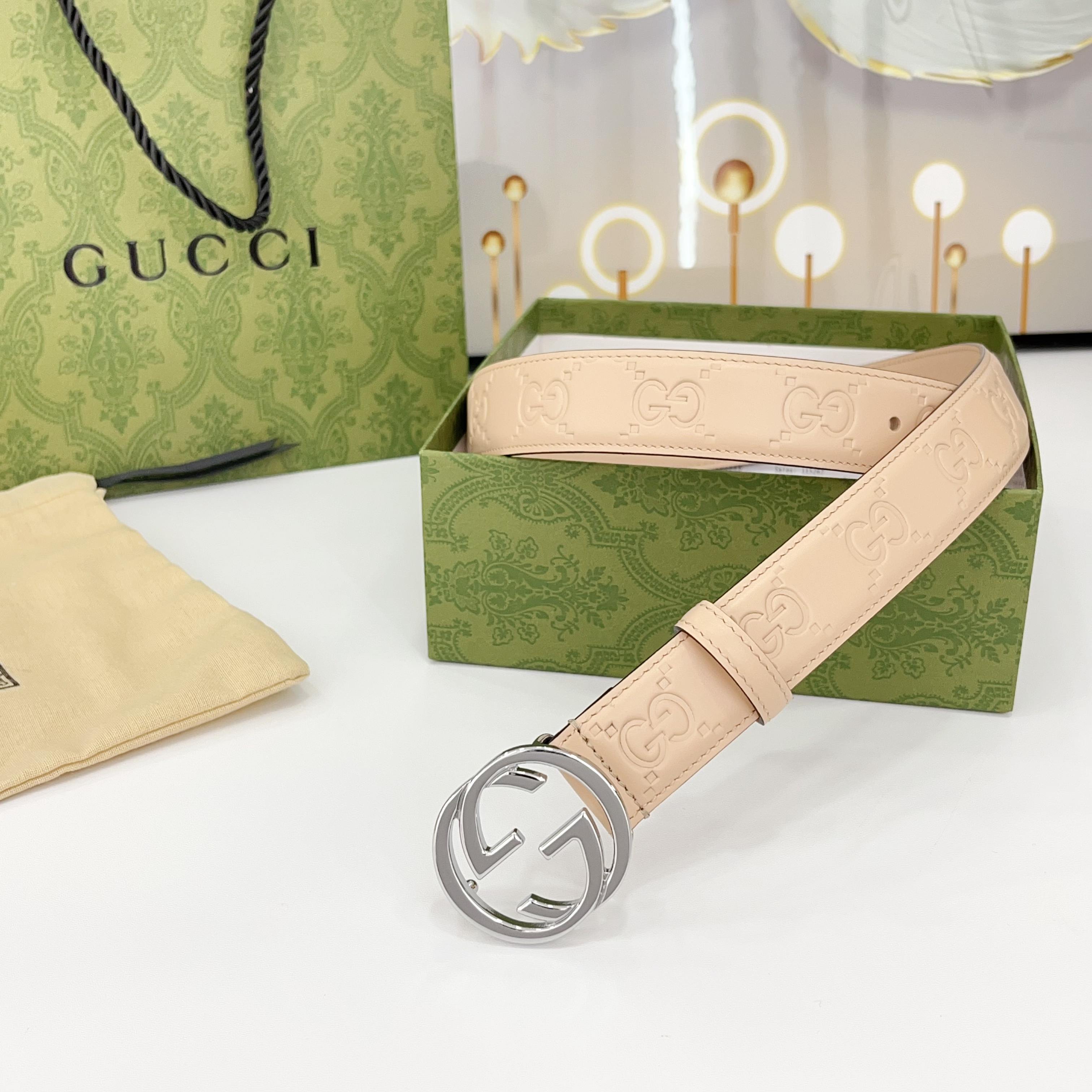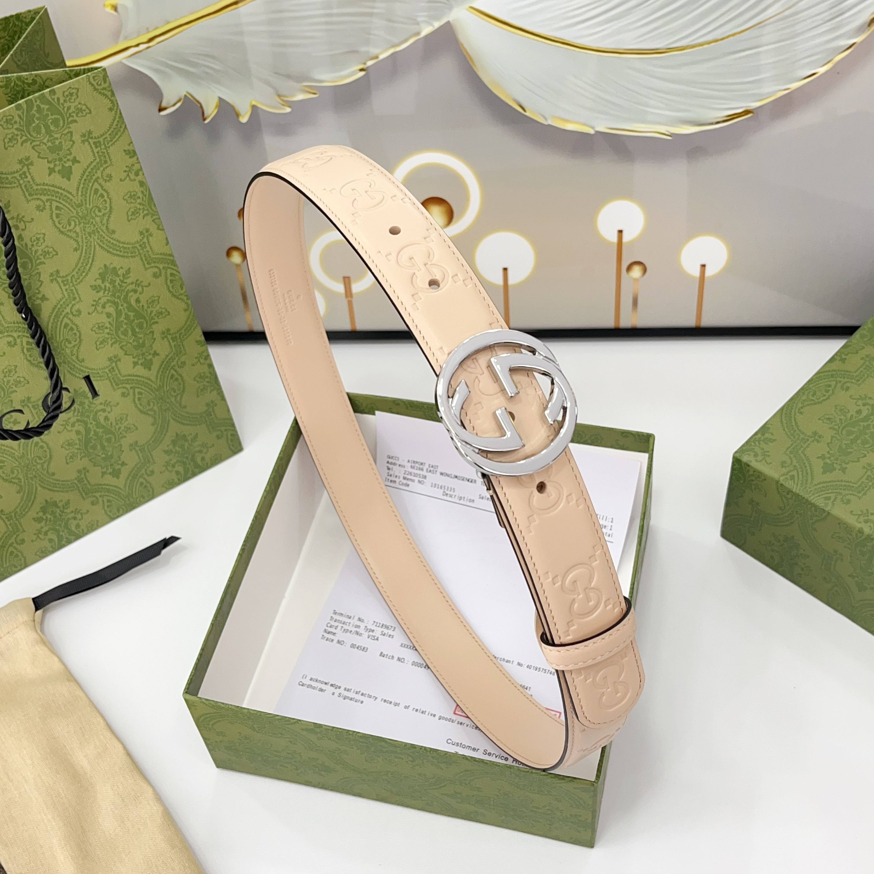 The Gucci belt is 3.0cm wide Double-sided top-grain calfskin made from original factory leather, with a classic embossed surface and copper buckles, is fashionable and versatile Code number: 75 80 85 90 95 100 105 110