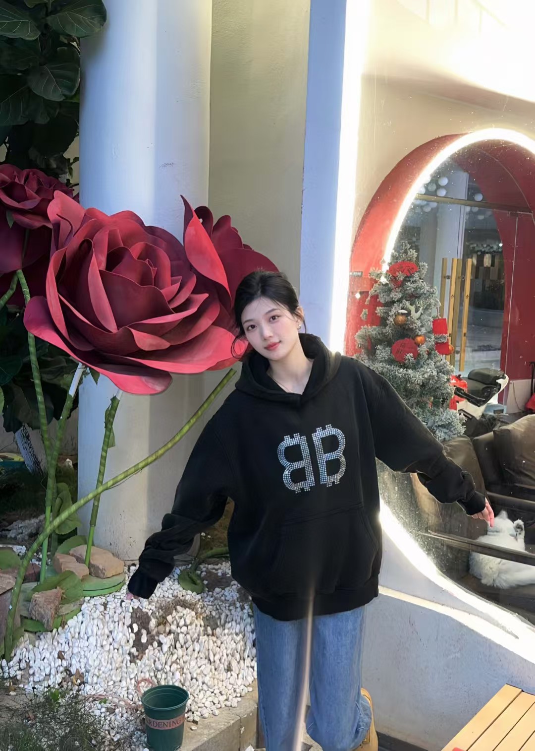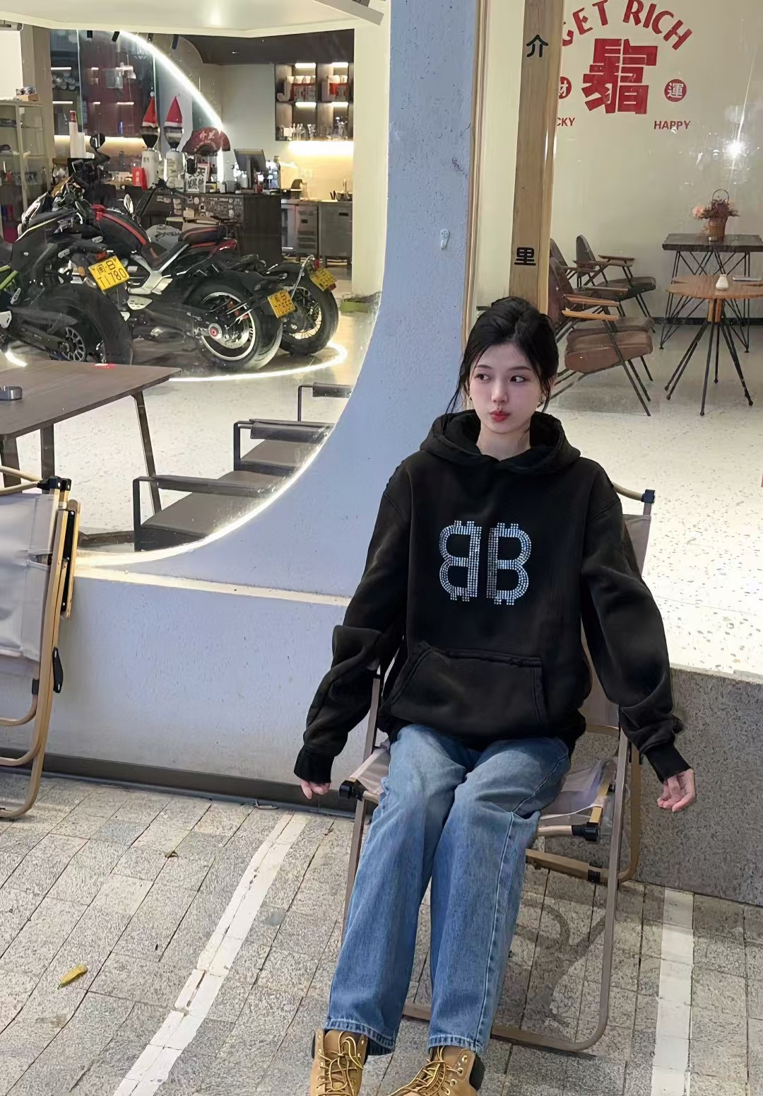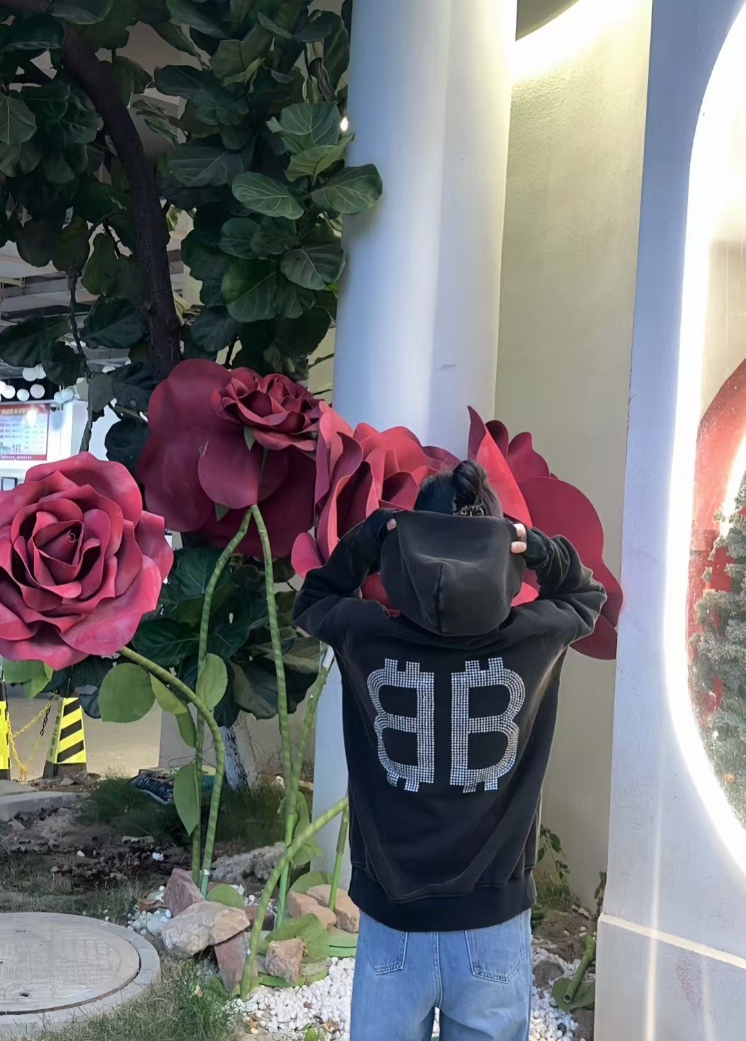 Balenciaga/ Balenciaga 24Fw Double B Bitcoin diamond ironing and Fleece hooded sweatshirt wearing effect #