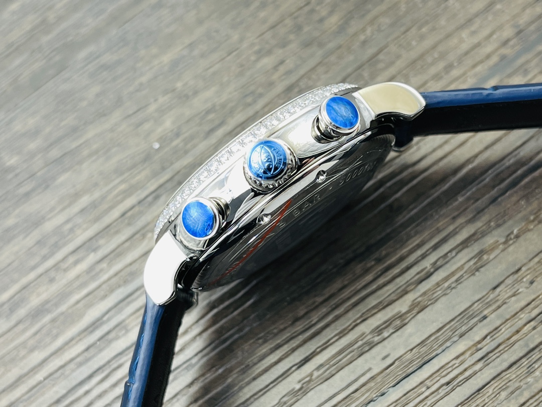 IWC Portofino Chronograph Men's watch! 1 ? The watch is 42MM in size and 13.5MM in thickness! 2 ? The case is made of 904L stainless steel, which has been finely polished to give a fine luster. It is set with 60 Swarovski crystal diamonds. The lugs are naturally curved and blend perfectly with the case. The lines are smooth and the luster is dazzling. 3 ? Equipped with Dandong 7750 modified 4601 automatic mechanical movement, all functions are in line with the original, with a closed case back and the anniversary emblem engraved on the case back! 4 ? Italian calfskin with pin clasps, easy to wear, excellent on the hand! IWS, a masterpiece of craftsmanship, presents the IWC Portofino Chronograph, vividly interpreting the timeless classic of Portofino. Welcome all watch enthusiasts to appreciate it!