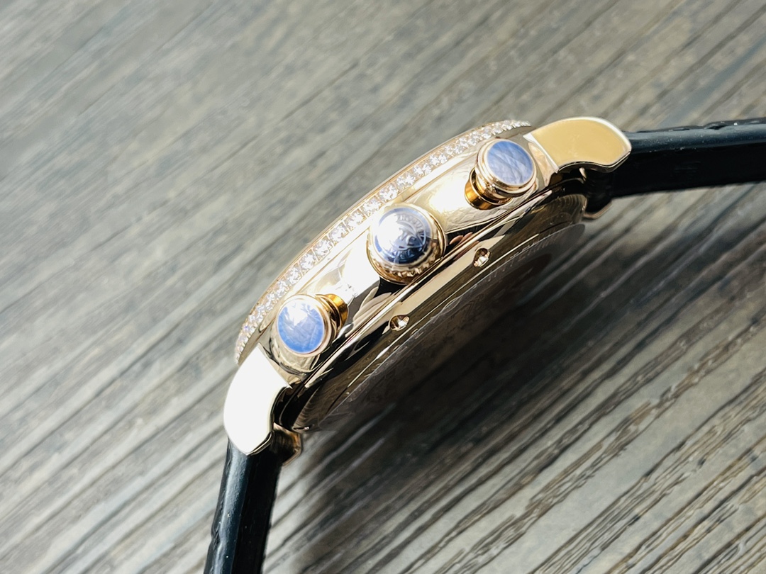 IWC Portofino Chronograph Men's watch! 1 ? The watch is 42MM in size and 13.5MM in thickness! 2 ? The case is made of 904L stainless steel, which has been finely polished to give a fine luster. It is set with 60 Swarovski crystal diamonds. The lugs are naturally curved and blend perfectly with the case. The lines are smooth and the luster is dazzling. 3 ? Equipped with Dandong 7750 modified 4601 automatic mechanical movement, all functions are in line with the original, with a closed case back and the anniversary emblem engraved on the case back! 4 ? Italian calfskin with pin clasps, easy to wear, excellent on the hand! IWS, a masterpiece of craftsmanship, presents the IWC Portofino Chronograph, vividly interpreting the timeless classic of Portofino. Welcome all watch enthusiasts to appreciate it!