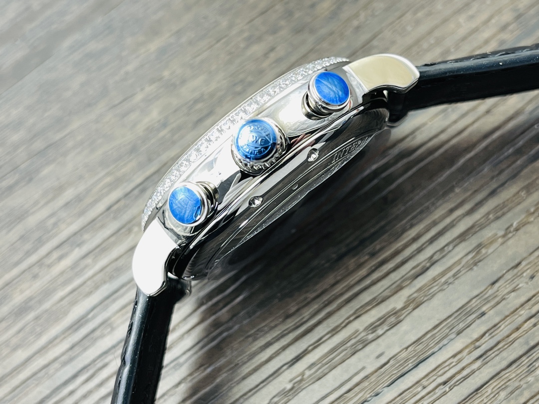 IWC Portofino Chronograph Men's watch! 1 ? The watch is 42MM in size and 13.5MM in thickness! 2 ? The case is made of 904L stainless steel, which has been finely polished to give a fine luster. It is set with 60 Swarovski crystal diamonds. The lugs are naturally curved and blend perfectly with the case. The lines are smooth and the luster is dazzling. 3 ? Equipped with Dandong 7750 modified 4601 automatic mechanical movement, all functions are in line with the original, with a closed case back and the anniversary emblem engraved on the case back! 4 ? Italian calfskin with pin clasps, easy to wear, excellent on the hand! IWS, a masterpiece of craftsmanship, presents the IWC Portofino Chronograph, vividly interpreting the timeless classic of Portofino. Welcome all watch enthusiasts to appreciate it!