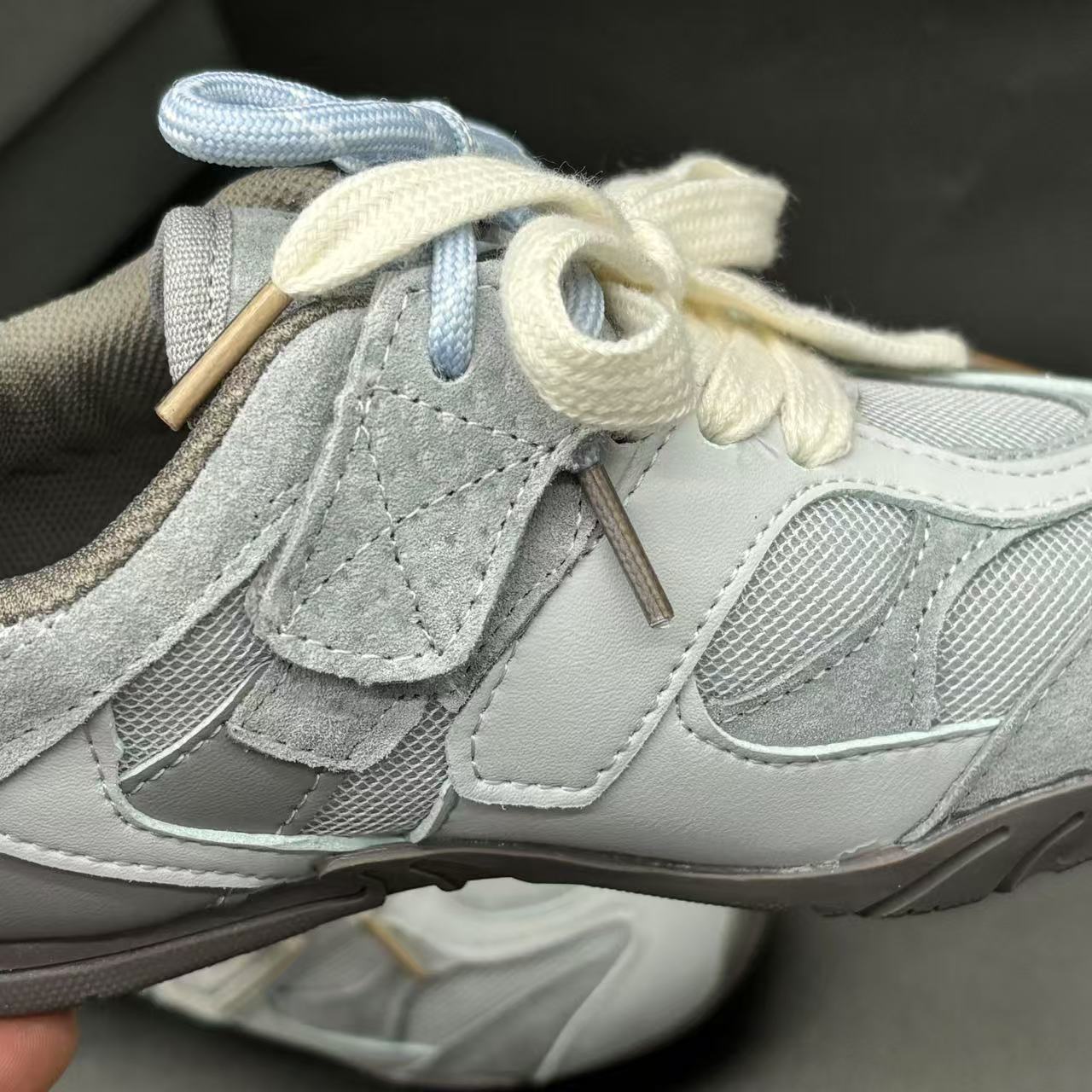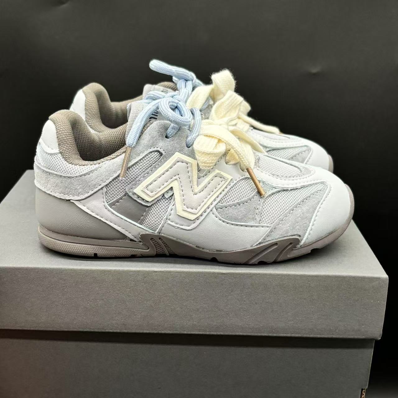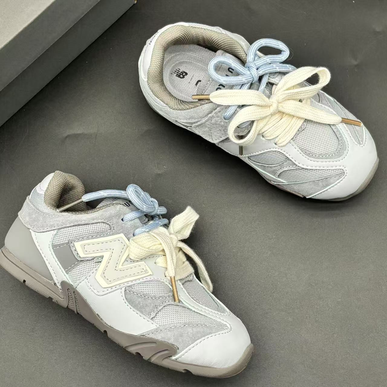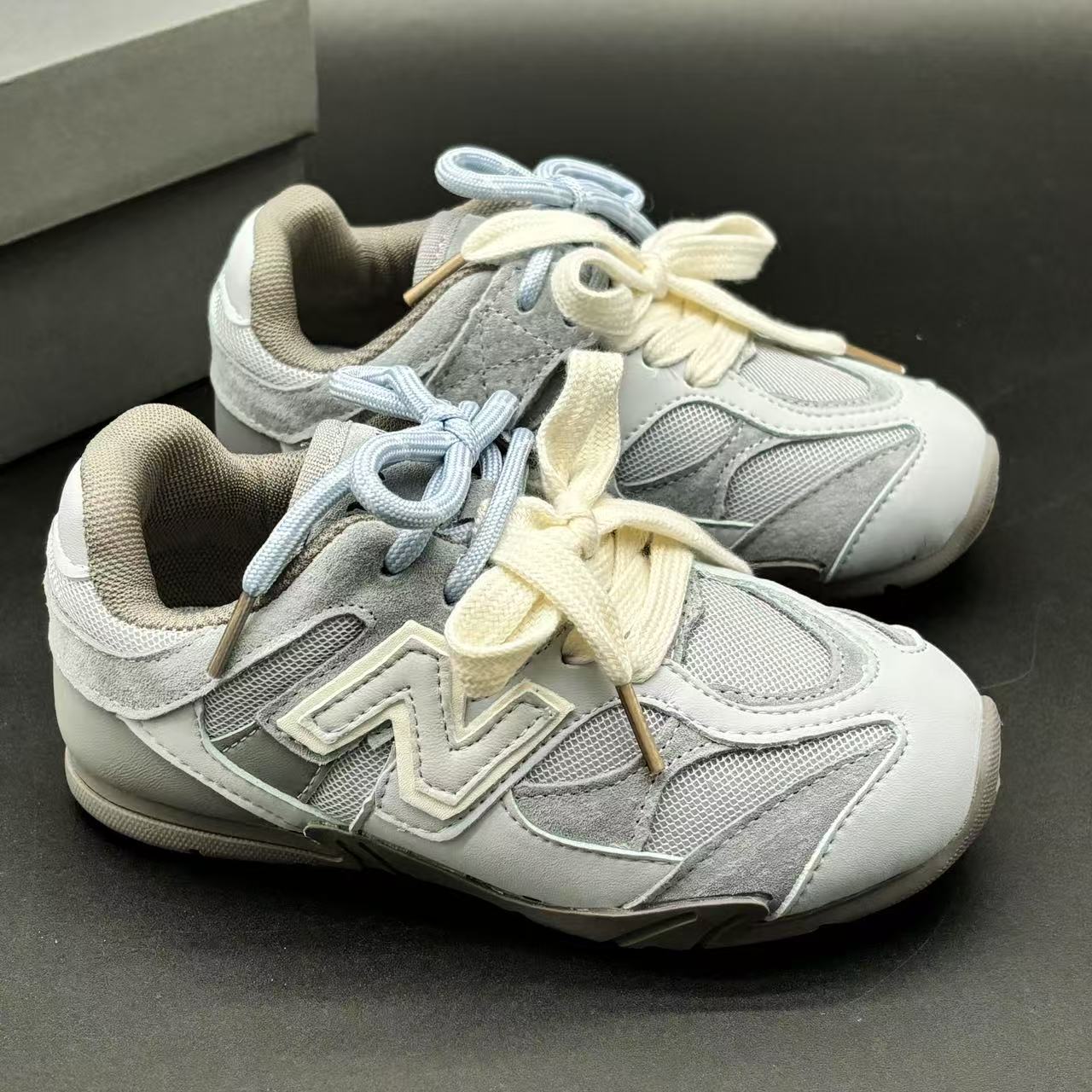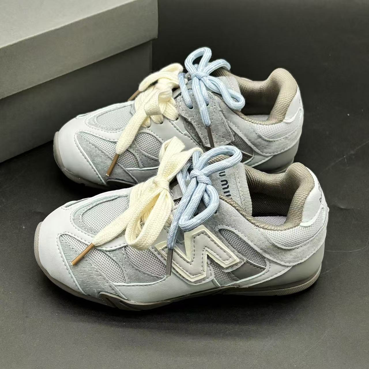 High-end children's shoes, men's and women's shoes, NB miumiu collaboration Pig eight leather mesh Velcro children's shoes, with lacing design, comfortable and good-looking to wear, size: 24-37