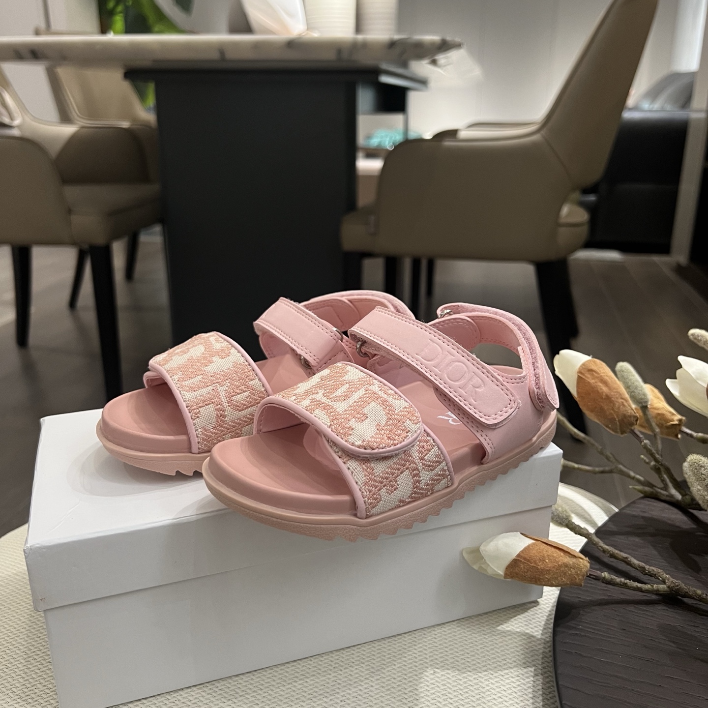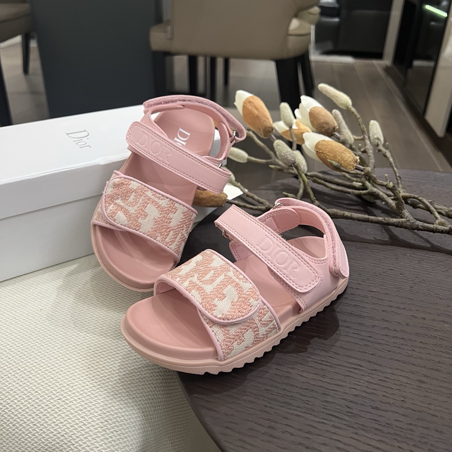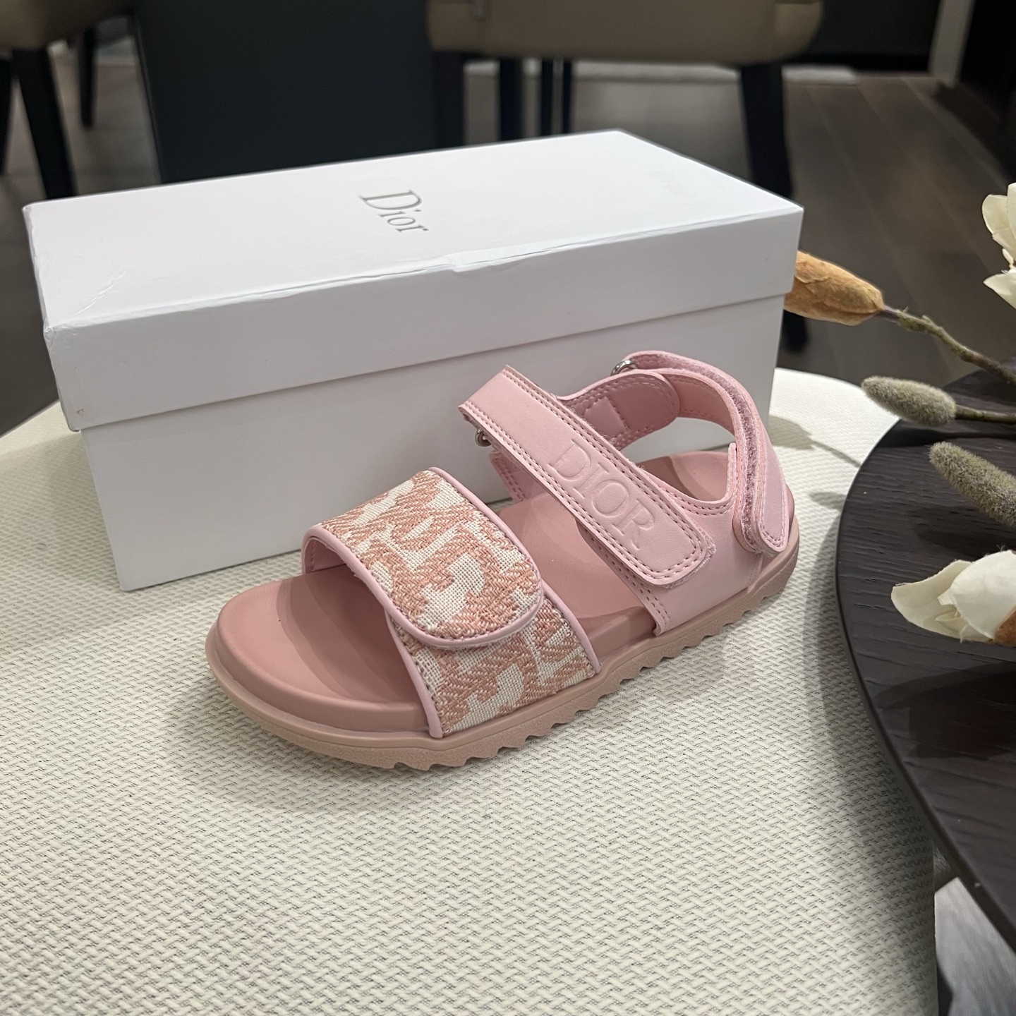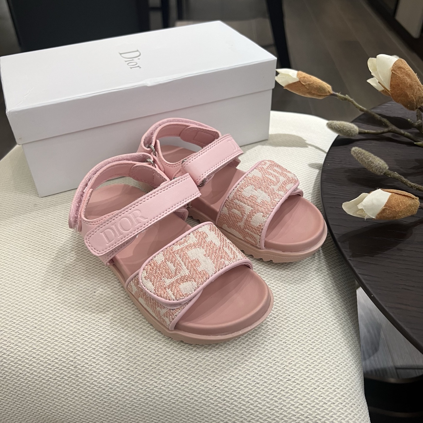 Reservation for 4 days! Dior, high-end children's shoes, boys' and girls' sandals, Velcro design, classic embroidery, rubber Pu outsole, comfortable and good-looking to wear. Sizes: 26, 27, 28, 29, 30, 31, 32, 33, 34, 35