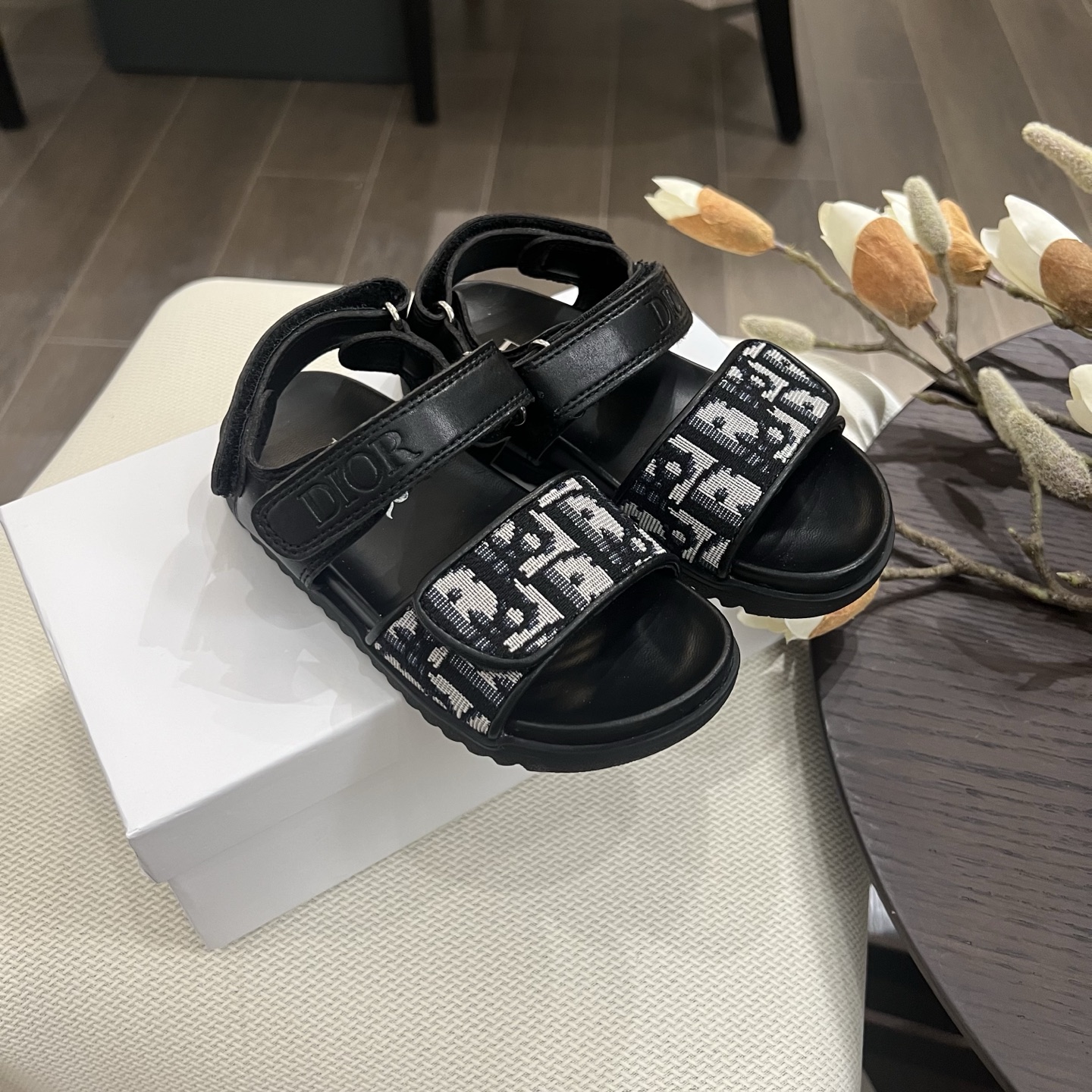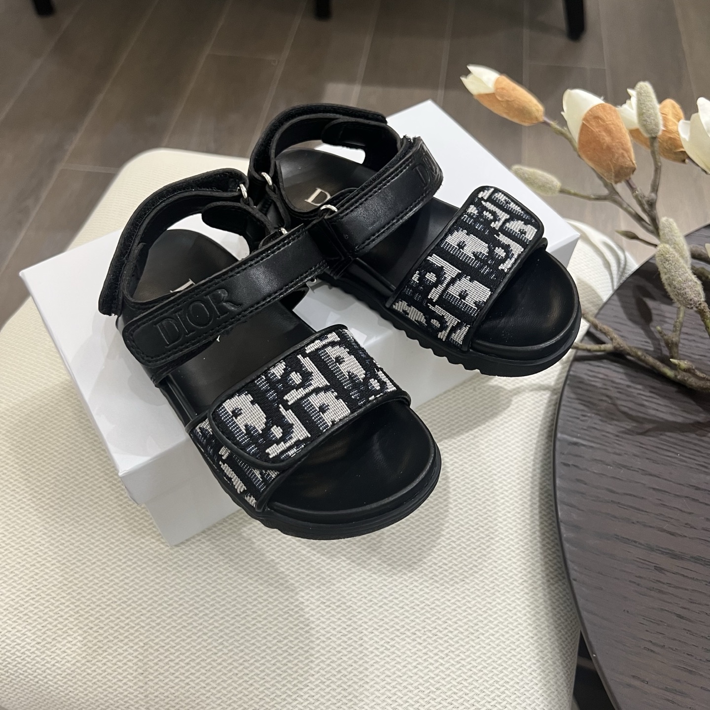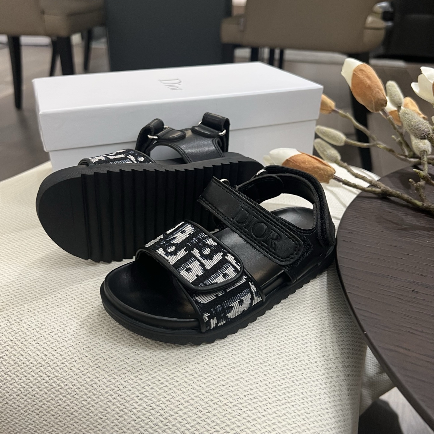 Reservation for 4 days! Dior, high-end children's shoes, boys' and girls' sandals, Velcro design, classic embroidery, rubber Pu outsole, comfortable and good-looking to wear. Sizes: 26, 27, 28, 29, 30, 31, 32, 33, 34, 35