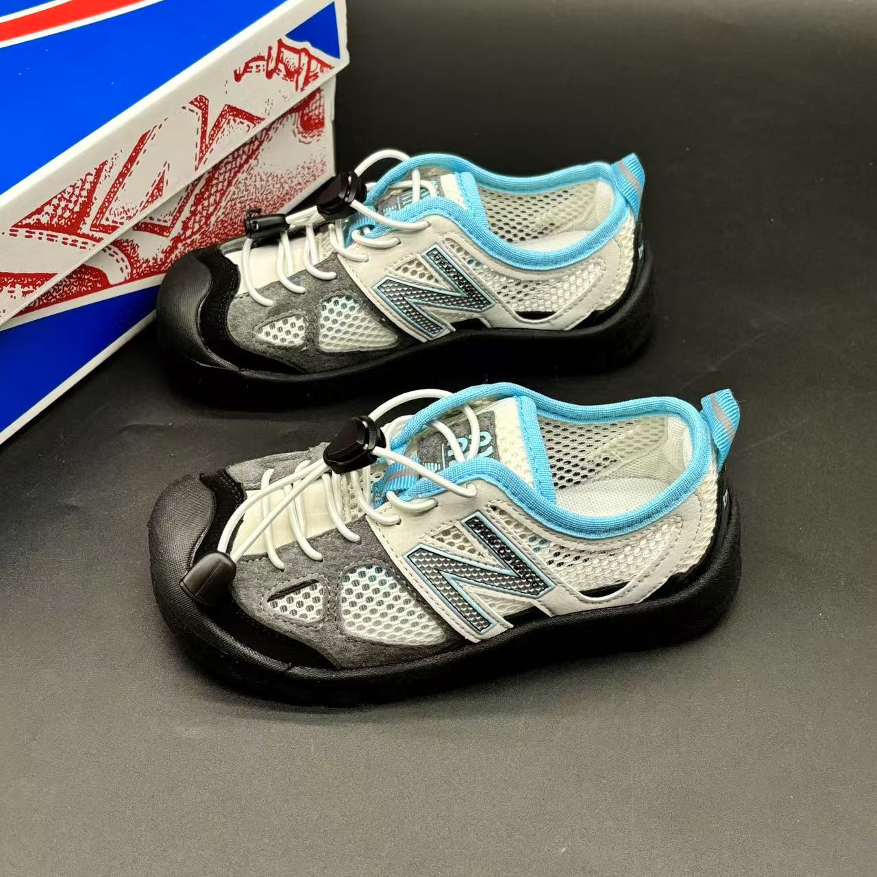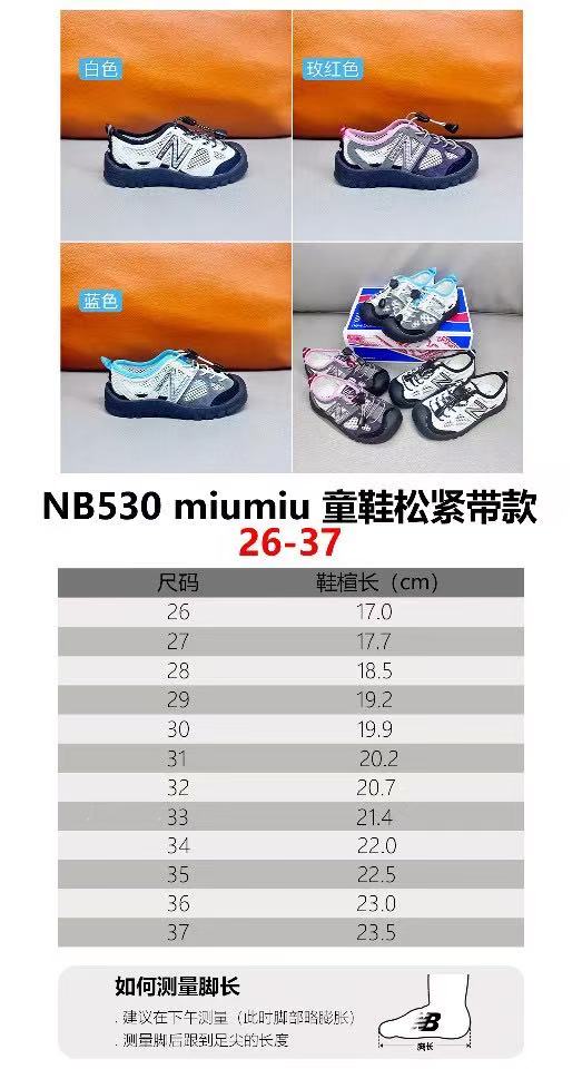 High-end children's shoes, men's and women's shoes, NB530 miumiu elastic band children's canyoning soft-soled children's beach sandals with breathable mesh, comfortable and good-looking to wear, size: 26-37