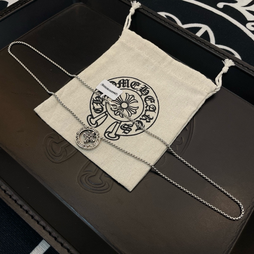 New batch [Counter quality] Chrome Hearts classic retro necklace, circular cross pendant, concave and convex design, different pattern design styles present uniqueness. The cross scout flower is the symbol of Chrome Hearts, so it remains popular for a long time. Genuine printed Chrome Hearts, different from the ordinary light version in the market Compare the quality of the characters and prints, look at the details of the retro and aged style, and the degree of gray and oxygen. Seiko version!! Handcrafted ~ GENUINE MOLD ?? Trendy FASHION MUST-HAVE men and women CAN wear the same couple official website original rock punk Thai silver style Retro element TRENDY VERSATILE! Necklaces/Necklace