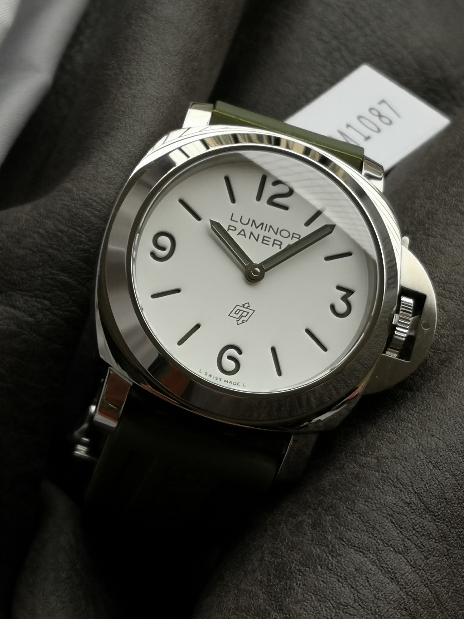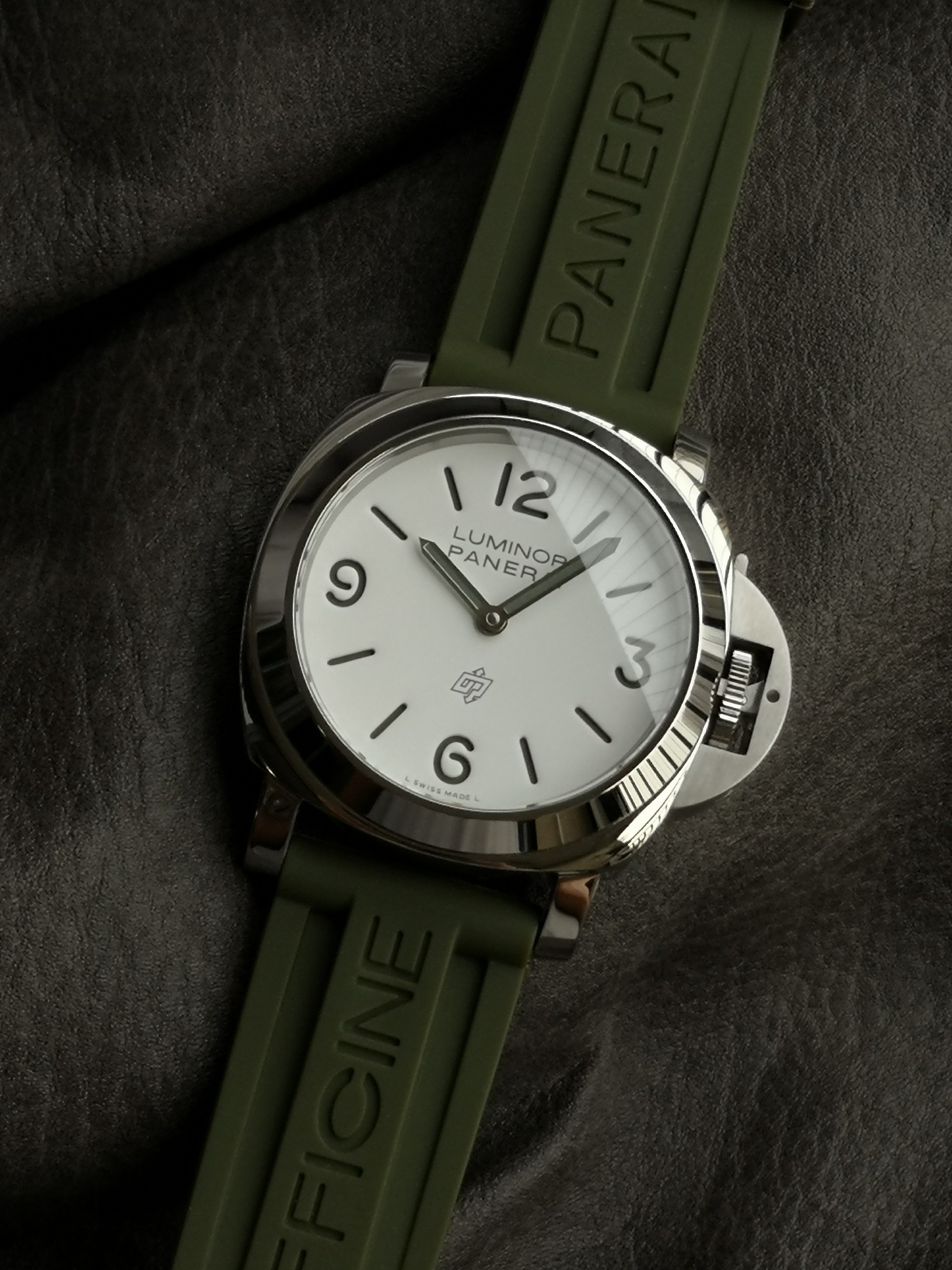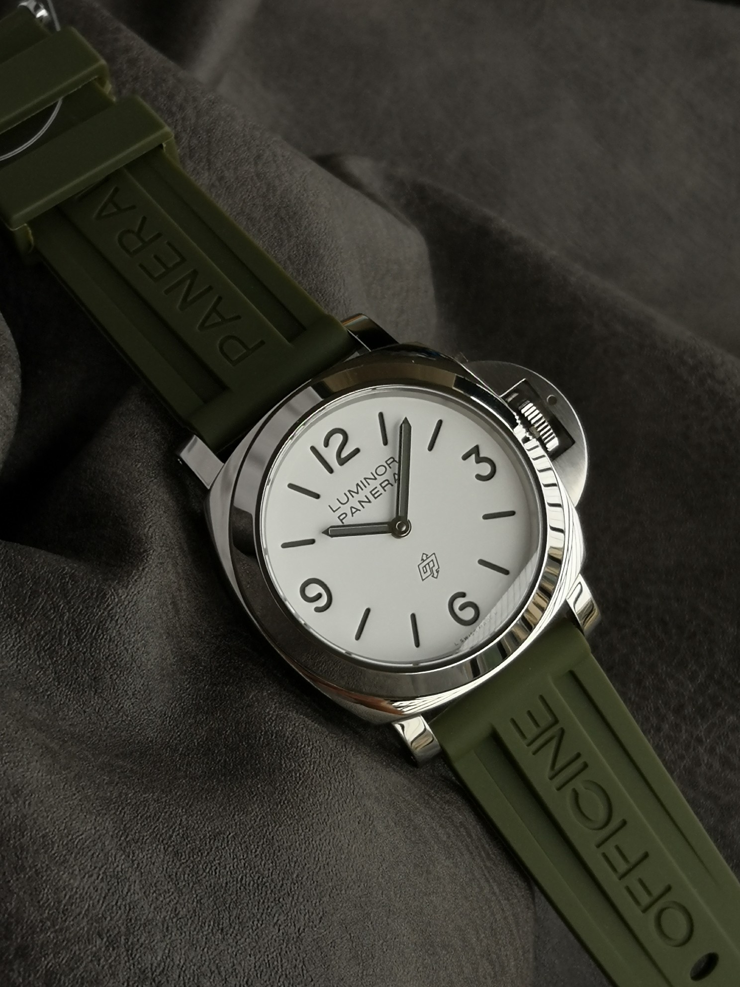 Panerai 1087 series, Luminor Panerai Pam1087 watch, equipped with 6497 hand-wound movement, super luminous, green rubber strap, 44mm diameter, white matte dial with polished stainless steel case, classic and simple, Panerai's latest entry-level choice.