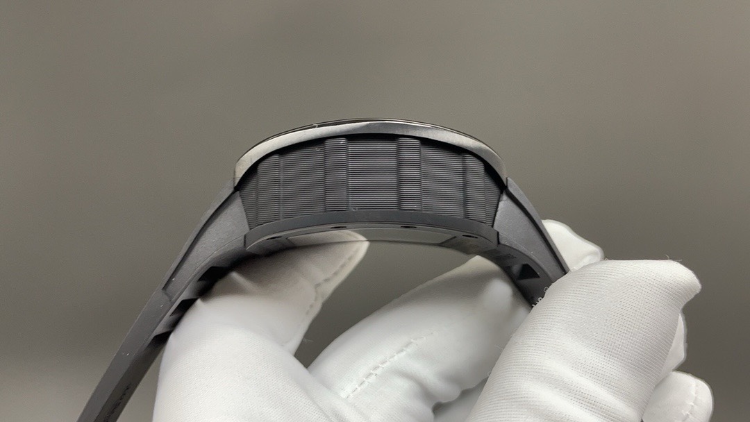 ???? [RICHARD MILLE] RM011-FM collection, made of stainless steel, perfectly fits the ergonomic design of the brand 's iconic buildings that pursue perfection. Every component of RM 011 is an aesthetic expression of its function. The RM011-FM watch retains the most recognizable signature shape, but the craftsmanship it employs still far exceeds that of the past. For the case part, the titanium version shown in the picture is available, but there are also rose gold and titanium versions to choose from. However, no matter which one it is, they both have a finely crafted brushed surface, which, when paired with polished chamfers, presents a sharp contrast. Equipped with the 7750 chronograph mechanical movement and clearly marked functional fonts (Start/Stop and Reset/ Flyback), its design inspiration comes from the pedals in F1 racing cars. All these optimization changes have made this RM 11-FM flyback chronograph automatic wristwatch more sporty and trendy than previous models