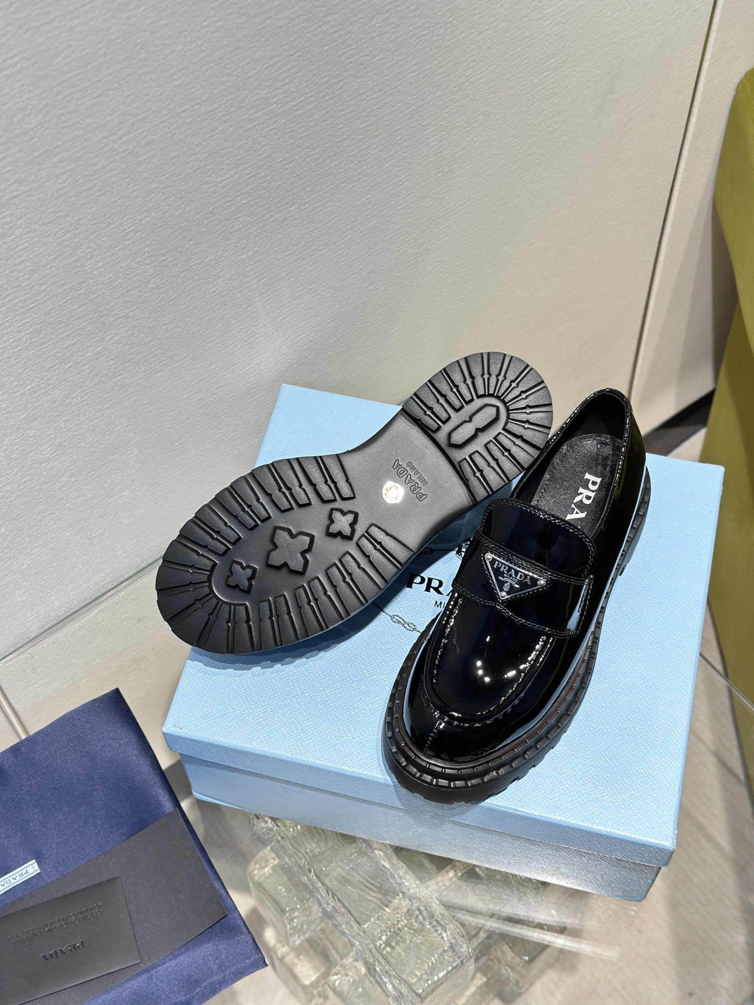 ???? New PRADA PRADA, beaded/patent/oiled leather, sheepskin lining, original TPU outsole, 35-39 size (40,41 size custom, non-returnable and non-exchangeable)