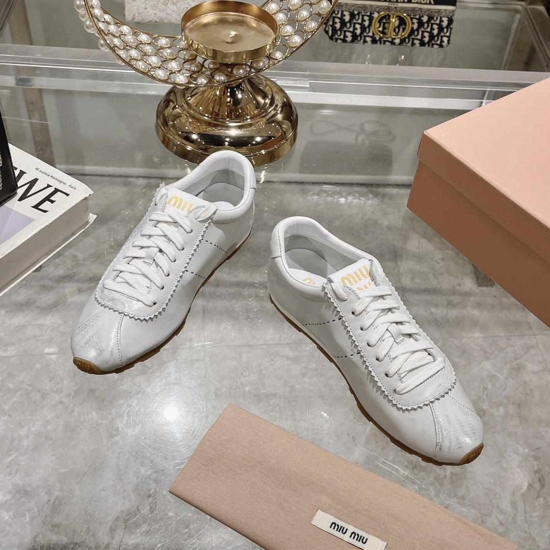???? MiuMiu MiumIU 24 Autumn/WINTER NEW DIRTY little WHITE SHOES FIT PARTICULARLY COMFORTABLE breathable ?? Simple RETRO fashion The imported fine cowhide material, with a sheepskin lining and rubber outsole, is very soft. Sisters, hurry up and get it. It feels particularly light when worn Size:#34-40.(Custom-made 40 is non-returnable and non-exchangeable.)