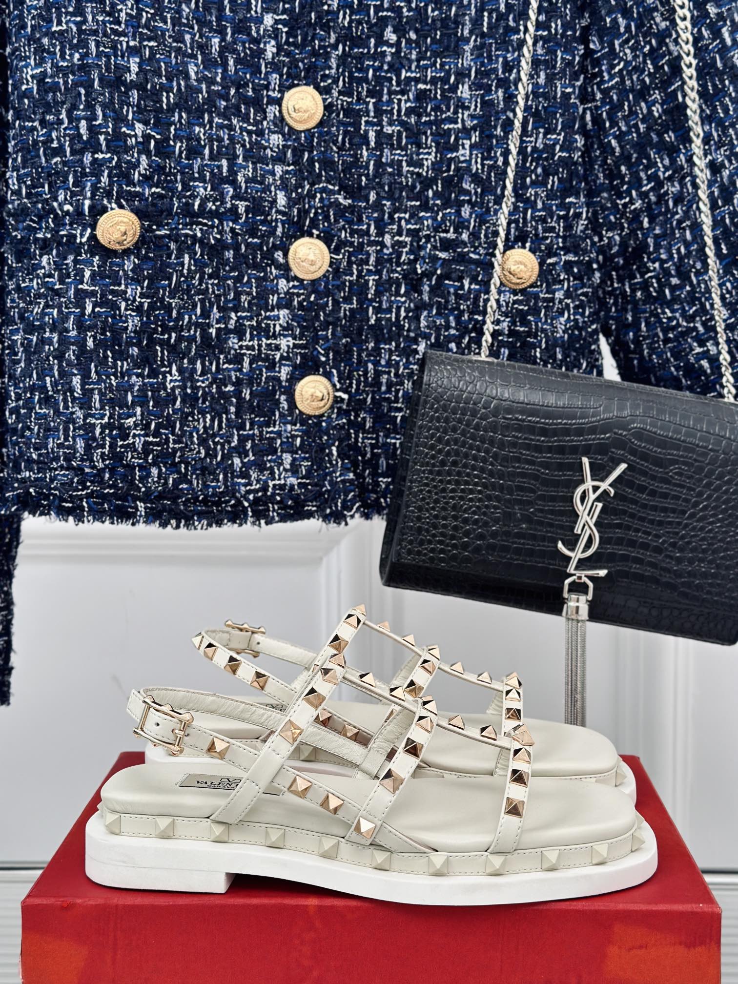 ?? ?? Valentin | Classic of Valentina Riveted flat Sandals The upper of the shoe is made of imported calfskin Inside, there is a mixed sheepskin on tiptoe Original molded hardware buckle Original molded foamed outsole Code size: 35-39 (Customized 40/41/42)